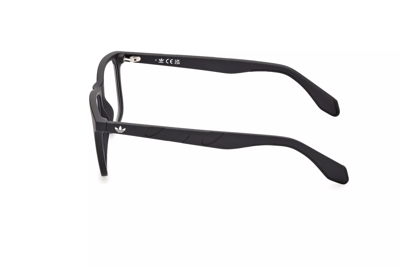 A dianteira dos óculos também não deve ser maior que as têmporas.