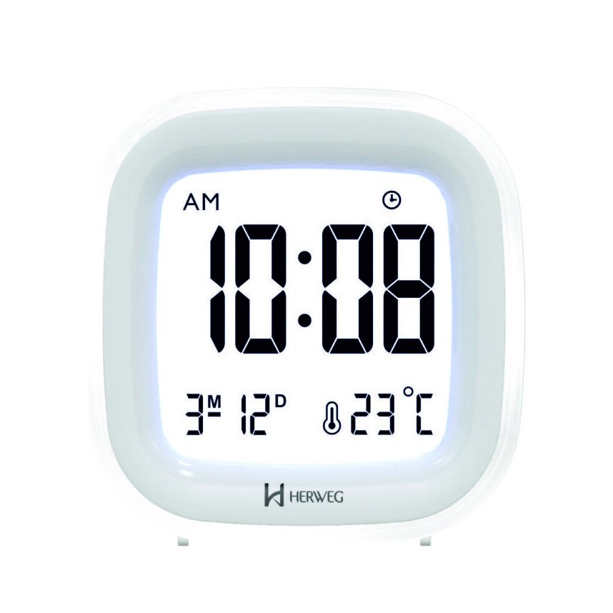 Iluminação noturna com led no display e em detalhe transparente contornando o despertador.