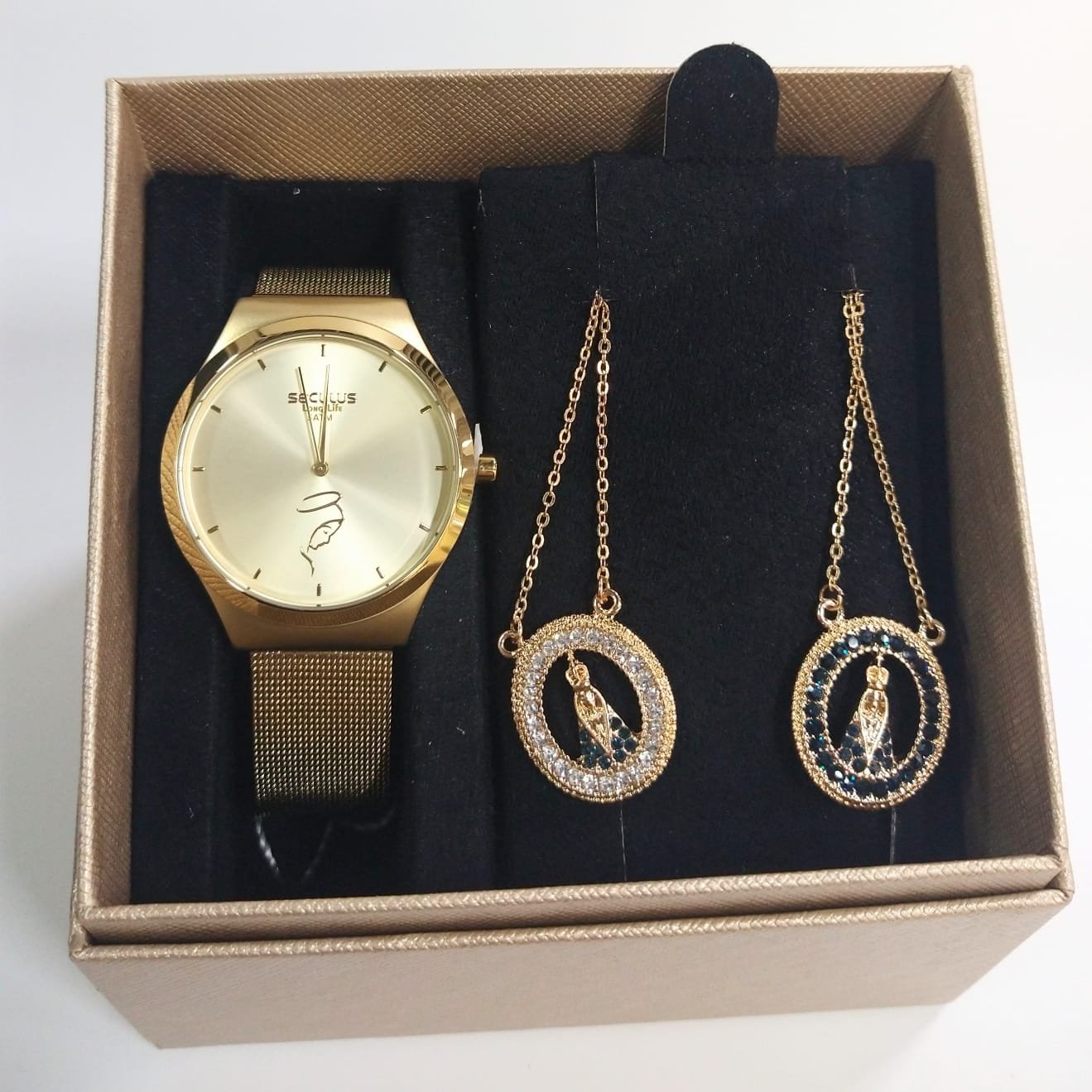 Itens Inclusos: Nota Fiscal, Certificado de Garantia, Estojo, Relógio e Colar Nossa Senhora Aparecida