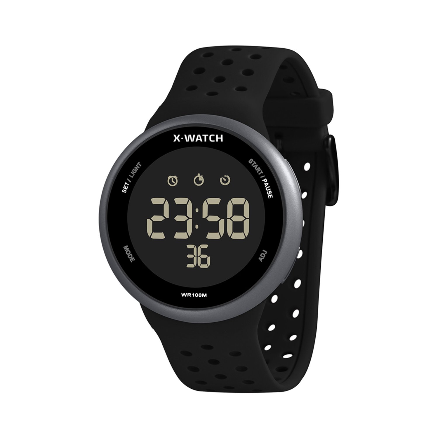Funções: Digital, Cronógrafo, Alarme, Timer, Calendário, 12/24 h, Iluminação